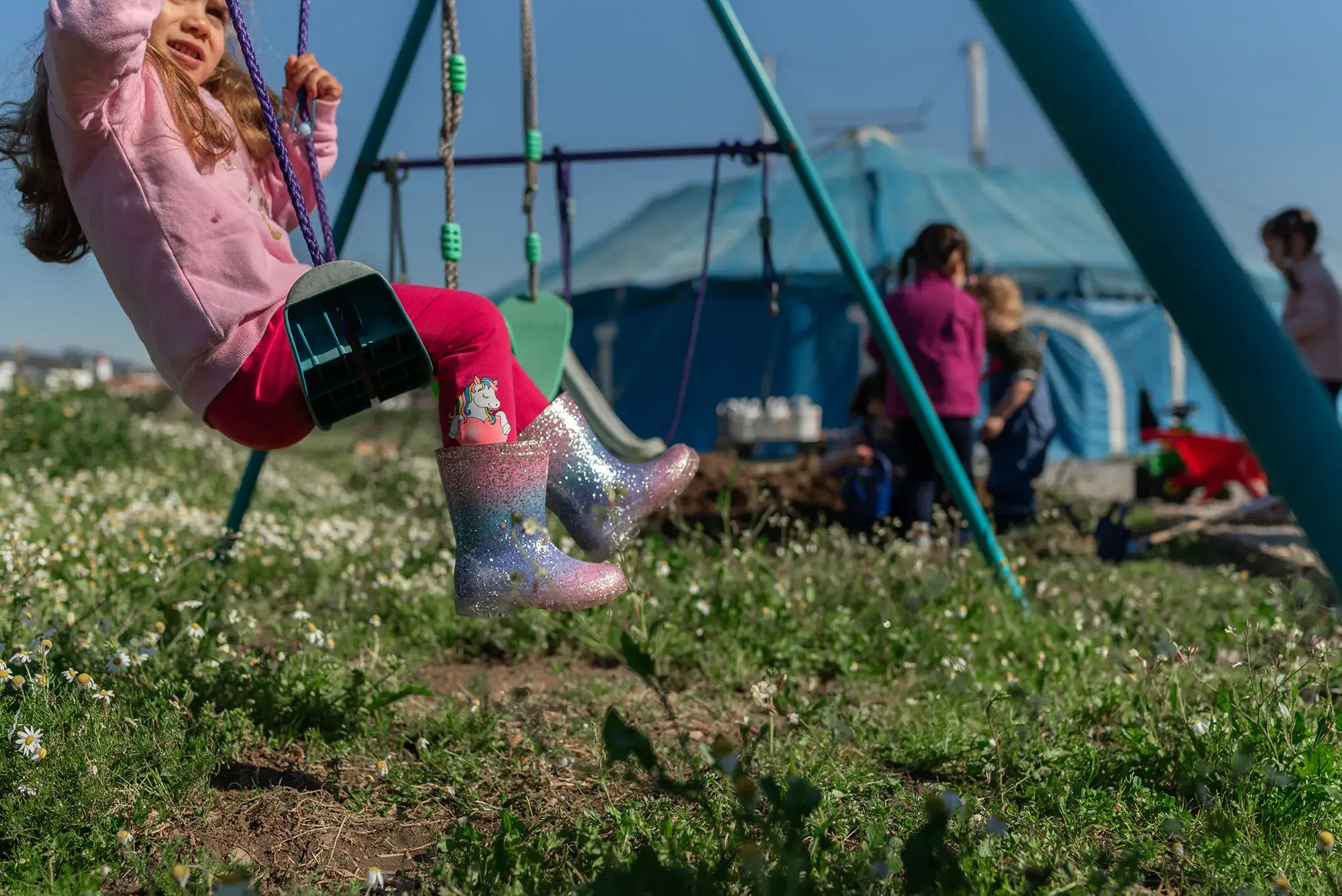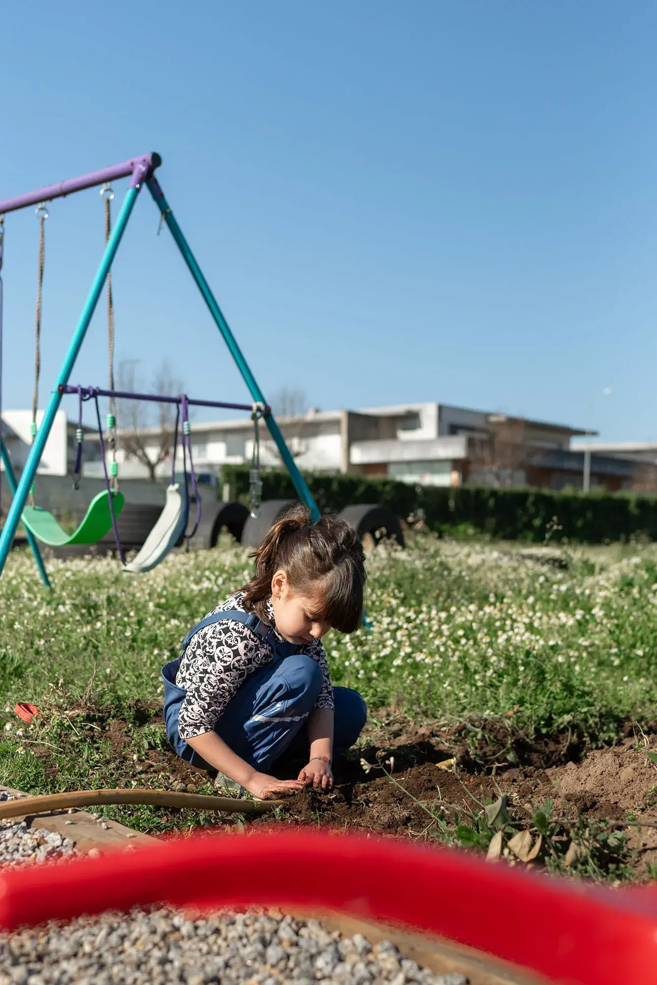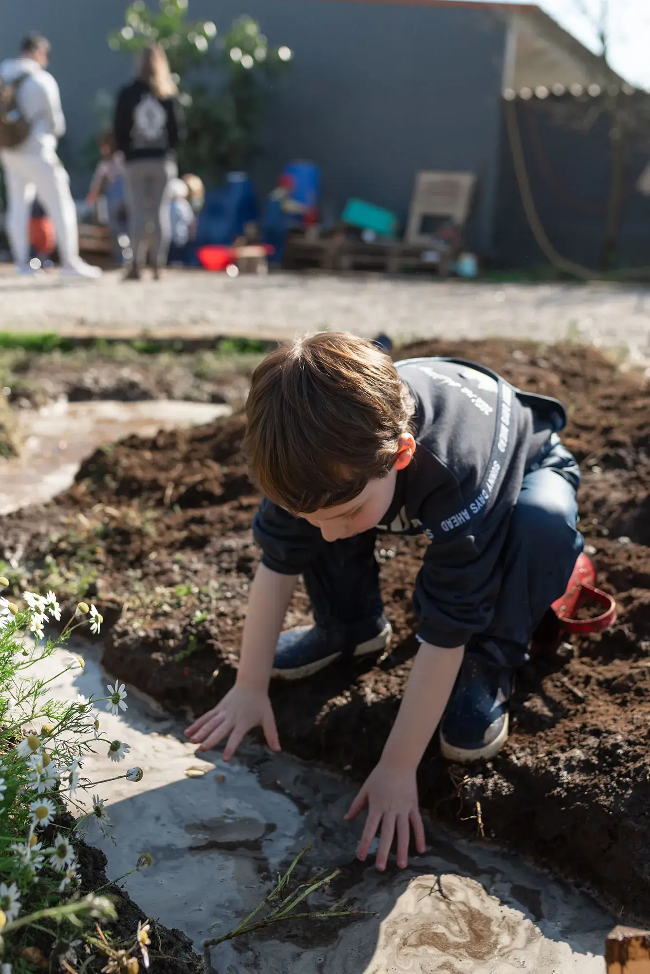 Num mundo que acelera, nós abrandamos. Acreditamos que o verdadeiro crescimento acontece fora de quatro paredes, com os pés descalços e as mãos sujas. Antes da escrita, vem a força que amassa o barro. Antes dos números, a paciência que vê uma semente germinar.